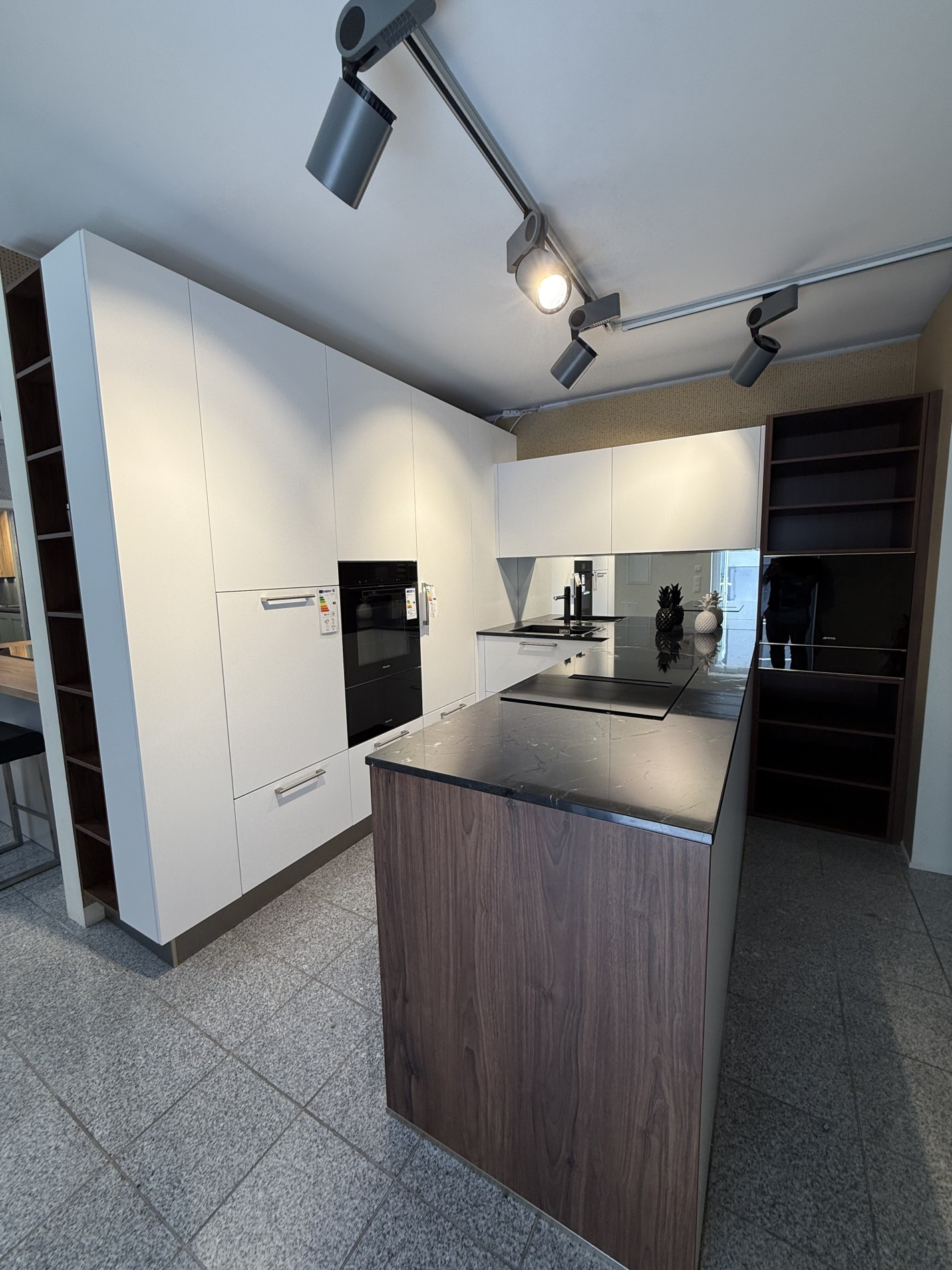 - Die Küche enthält eine Spiegelrückwand