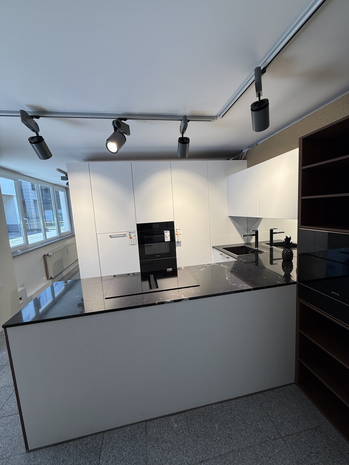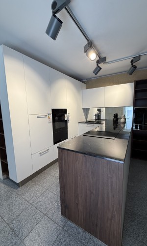 - Von der Hinterkante der Hochschränke bis zur Hinterkante der Insel sind es 225cm-inkl. Weinkühlerumbau sind 290cm