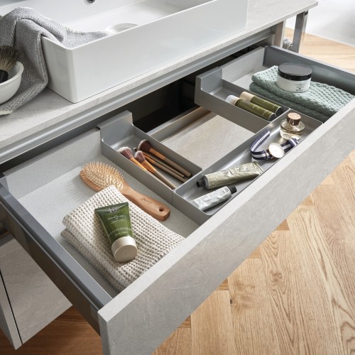 Genauso wie im Wohnbereich, glänzt der vielfältige Ansatz hochwertiger Möbel in Küchenqualität auch im Badezimmer durch flexible Planungsmöglichkeiten. Wir bieten Ihnen die Möglichkeit eine gesamtheitliche Planung dieser robusten Wohnmaterialien in absoluter Spitzenqualität und schaffen somit eine klare Linie für Ihren Einrichtungsstil.
